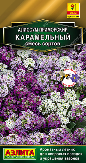 Почвопокровный ароматный летник и ценный медонос. Пышные низкорослые кустики высотой 10-20 см идеально подходят для ковровых посадок в цветниках. Эффектное сочетание контрастных оттенков * в смеси – это отличный выбор для окантовки клумб, оформления бордюров и подпорных стенок. Холодостойкий, неприхотливый алиссум зацветает в самом начале лета. При этом цветение длительное и непрерывное. Он хорошо уживается на каменистых горках, например, по соседству с карликовыми хвойными растениями. Подходит для горшечной культуры.